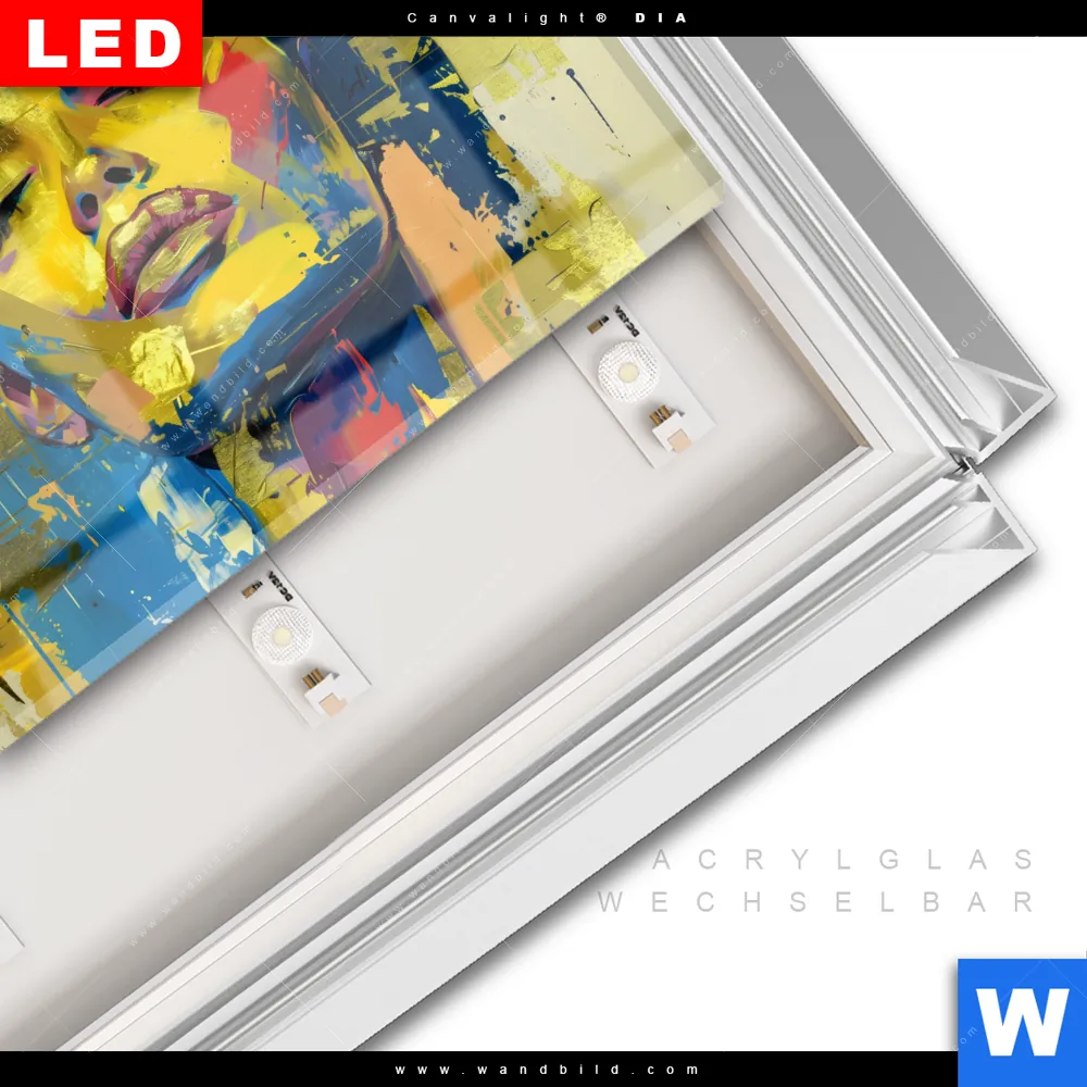 LED-Glasbild mit austauschbarem Acrylglas-Druck (Wechselbild)