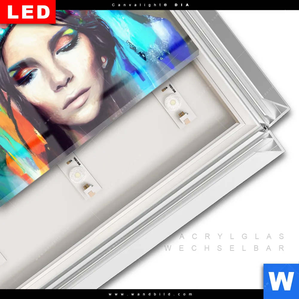 LED-Glasbild mit austauschbarem Acrylglas-Druck (Wechselbild)