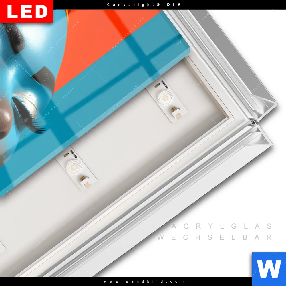 LED-Glasbild mit austauschbarem Acrylglas-Druck (Wechselbild)