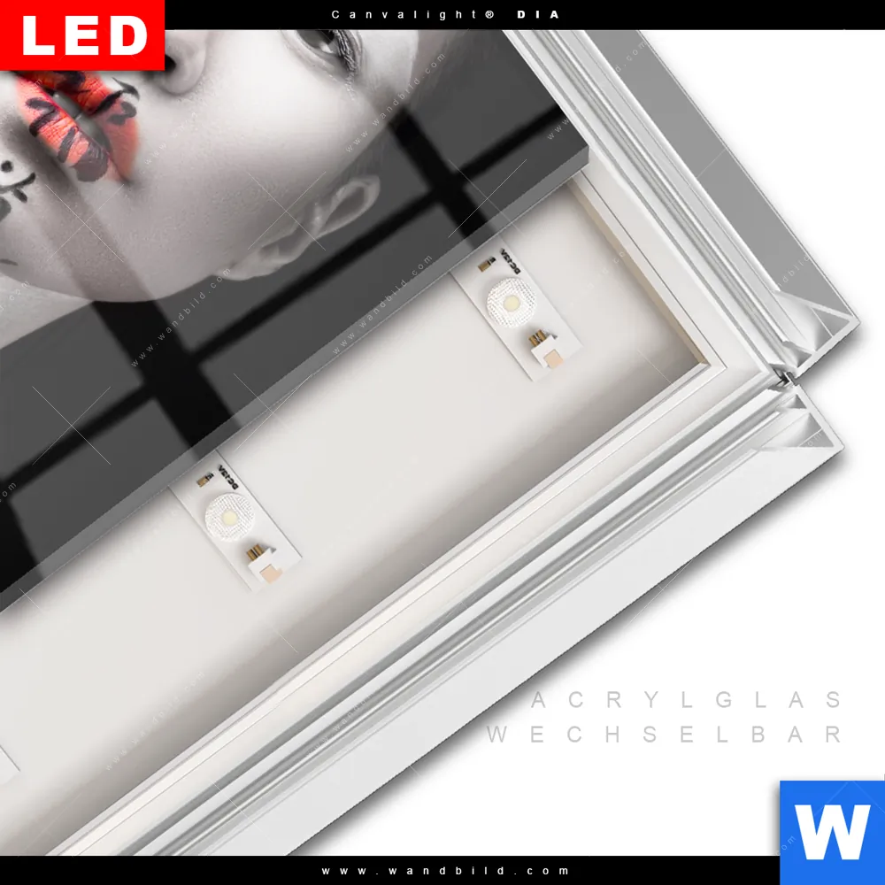 LED-Glasbild mit austauschbarem Acrylglas-Druck (Wechselbild)