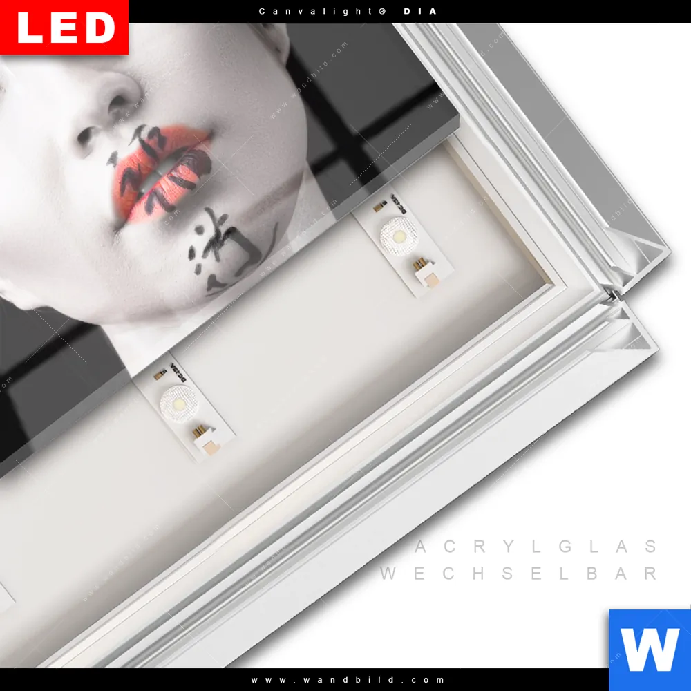 LED-Glasbild mit austauschbarem Acrylglas-Druck (Wechselbild)