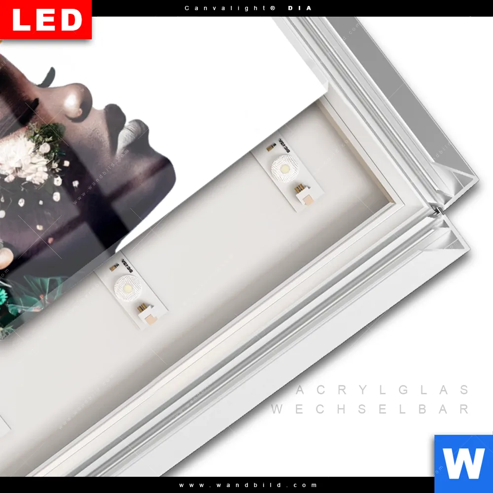 LED-Glasbild mit austauschbarem Acrylglas-Druck (Wechselbild)