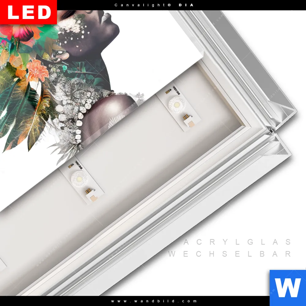 LED-Glasbild mit austauschbarem Acrylglas-Druck (Wechselbild)
