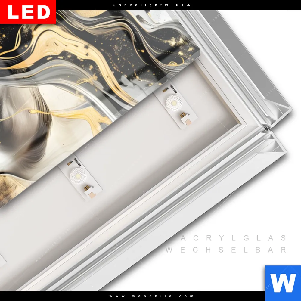 LED-Glasbild mit austauschbarem Acrylglas-Druck (Wechselbild)
