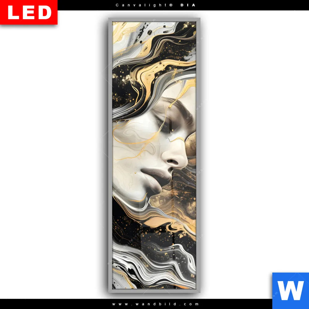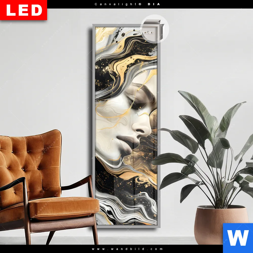 Canvalight® DIA Leuchtbild | Elegantes gold-schwarzes Porträt | Schmal