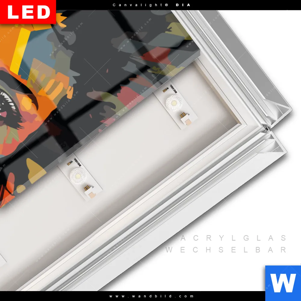LED-Glasbild mit austauschbarem Acrylglas-Druck (Wechselbild)