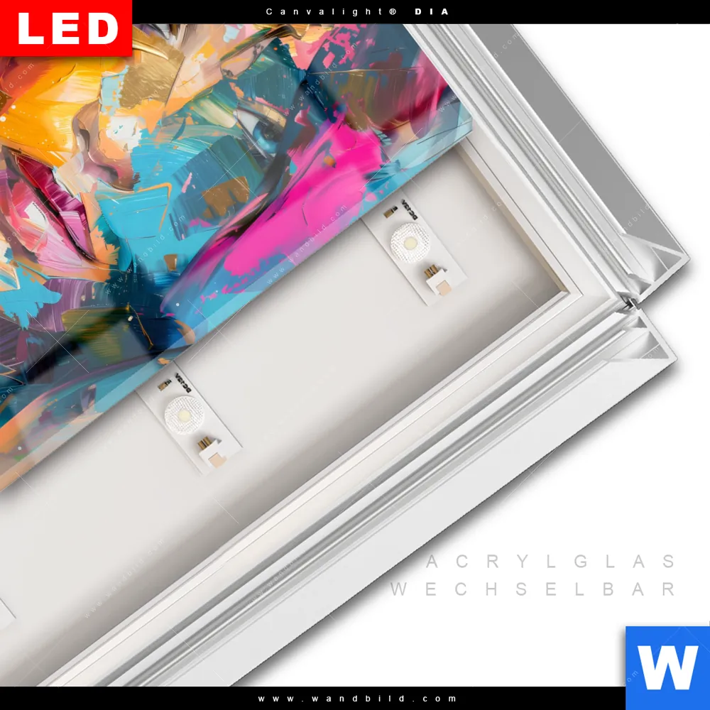 LED-Glasbild mit austauschbarem Acrylglas-Druck (Wechselbild)