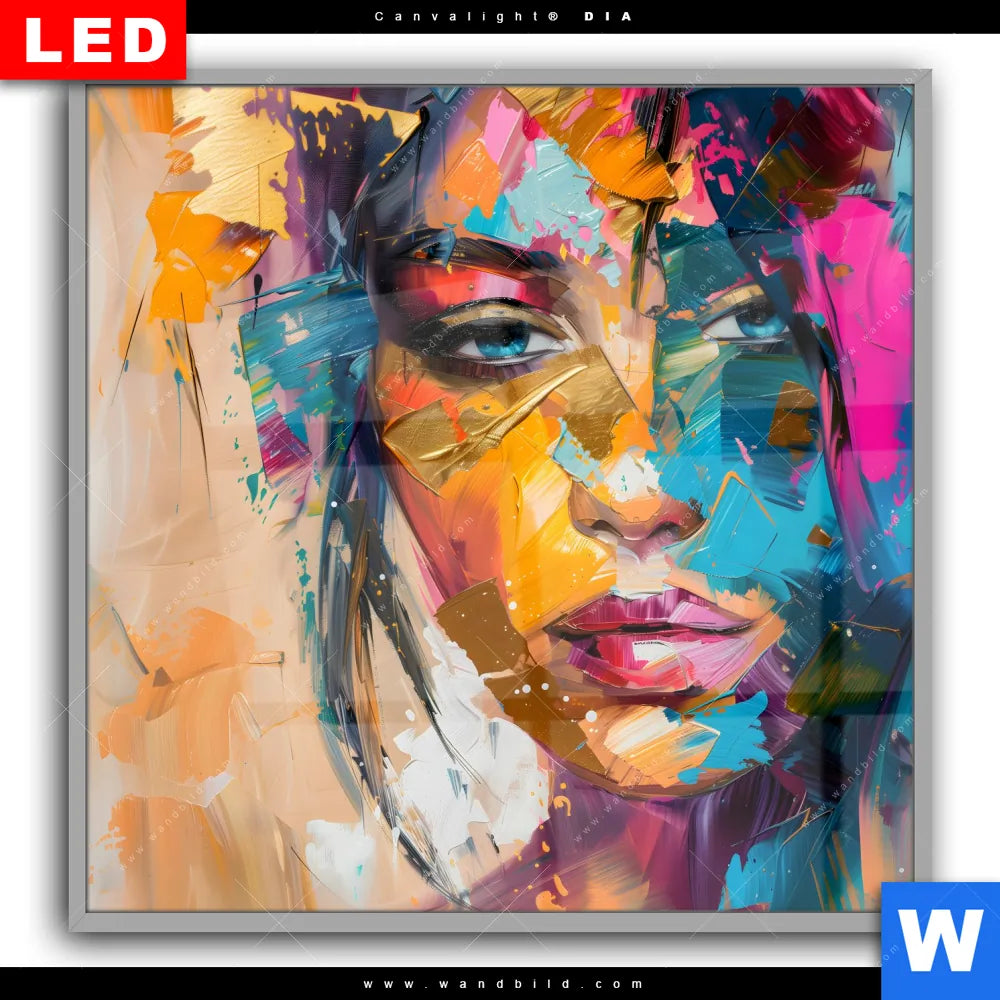 Canvalight® DIA Leuchtbild | Farbexplosion - Porträt Lola | Quadrat