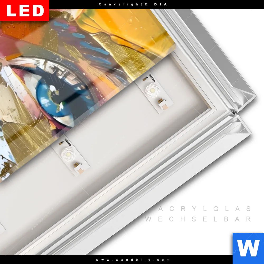LED-Glasbild mit austauschbarem Acrylglas-Druck (Wechselbild)