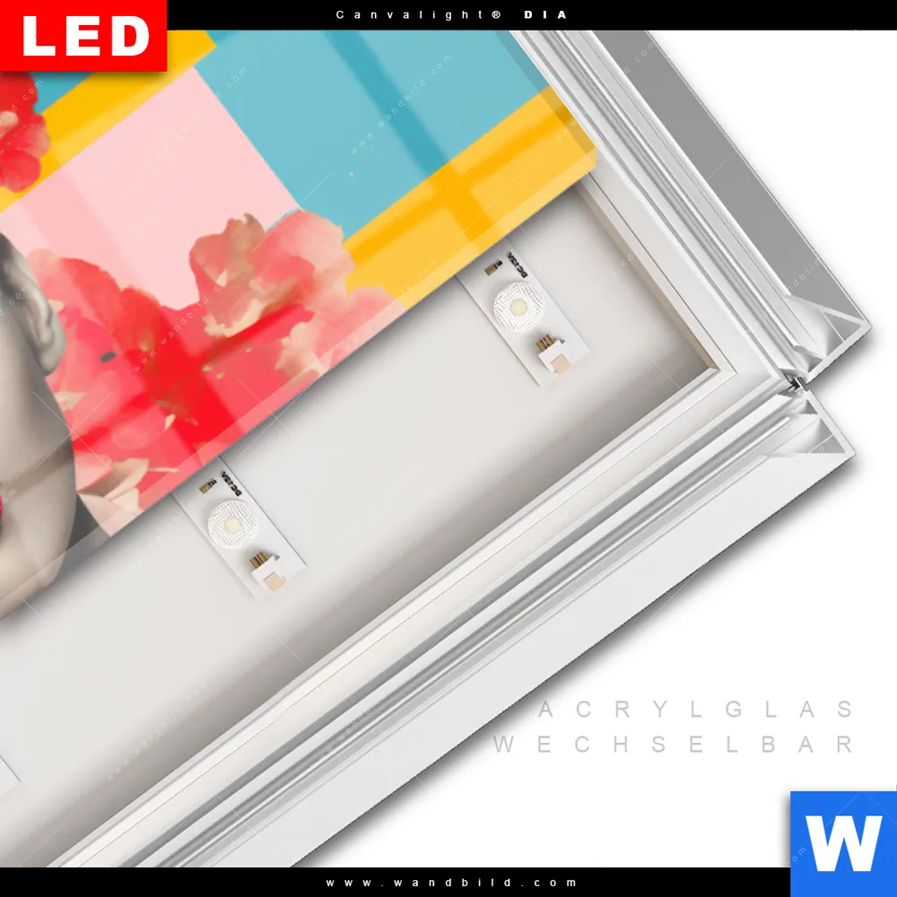 LED-Glasbild mit austauschbarem Acrylglas-Druck (Wechselbild)