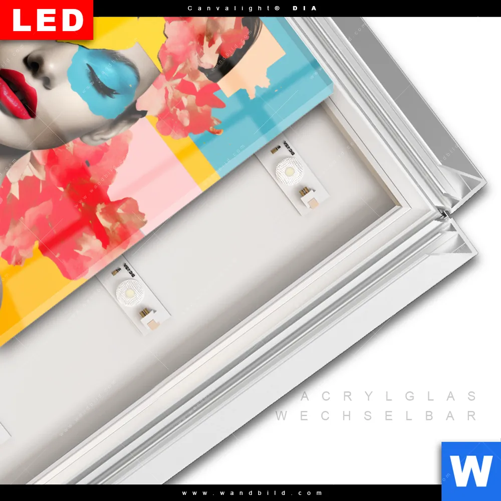 LED-Glasbild mit austauschbarem Acrylglas-Druck (Wechselbild)