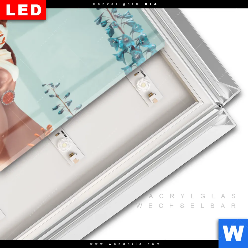 LED-Glasbild mit austauschbarem Acrylglas-Druck (Wechselbild)