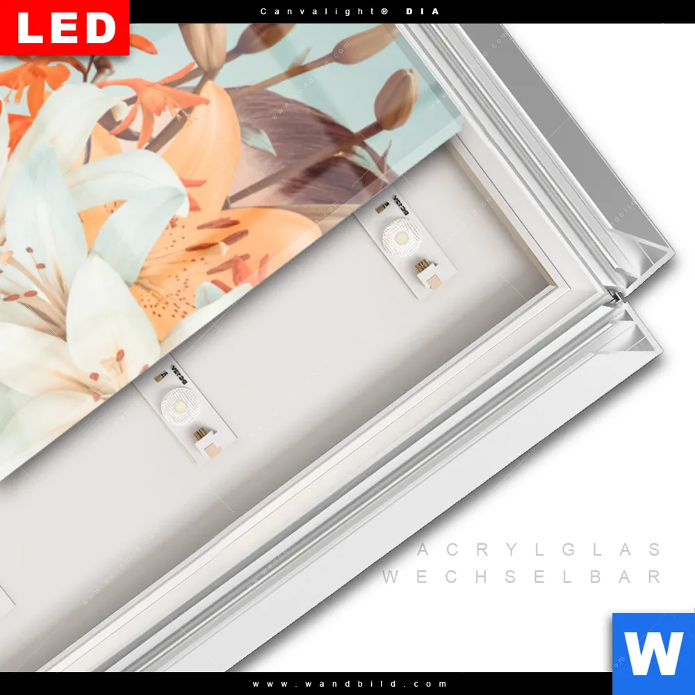 LED-Glasbild mit austauschbarem Acrylglas-Druck (Wechselbild)