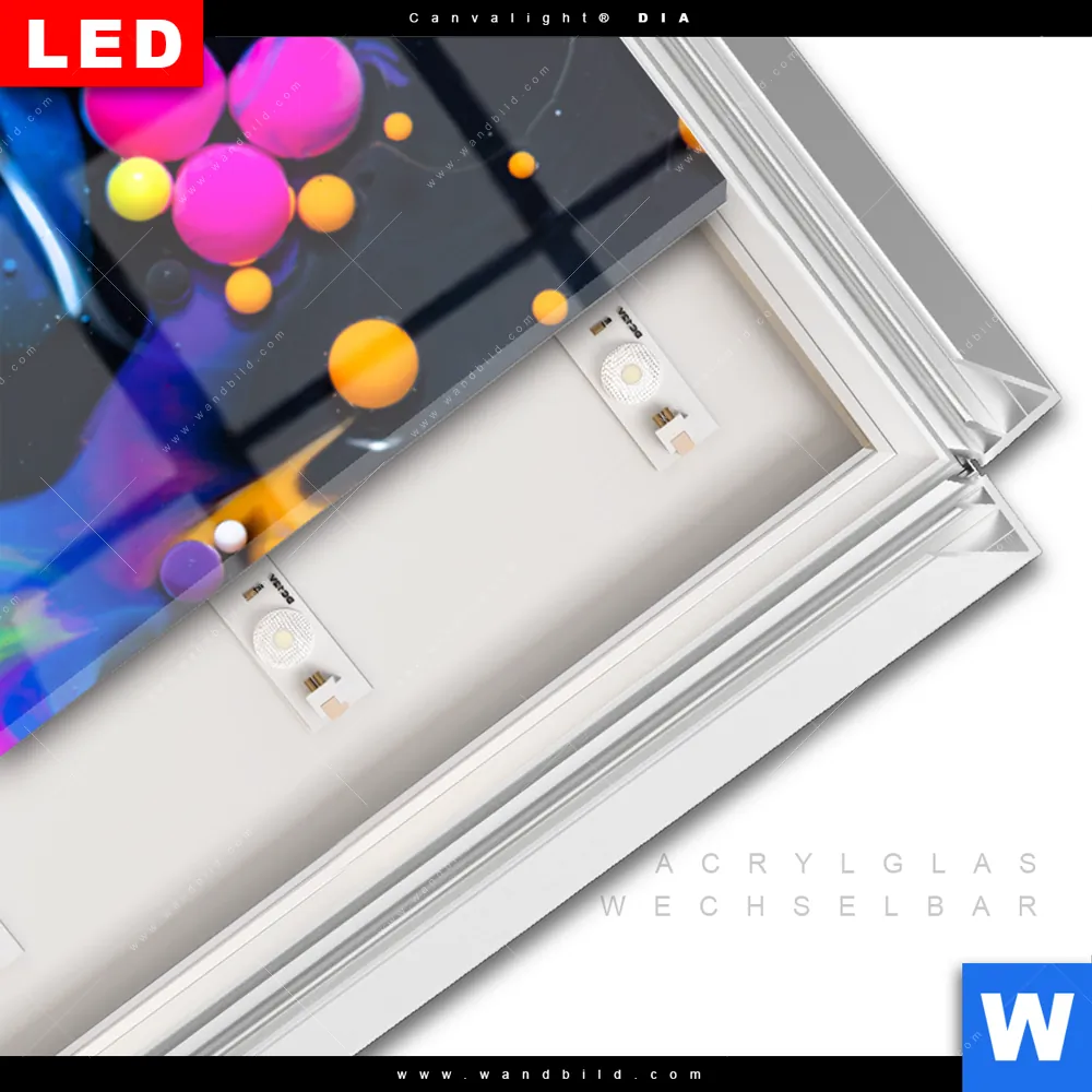 LED-Glasbild mit austauschbarem Acrylglas-Druck (Wechselbild)