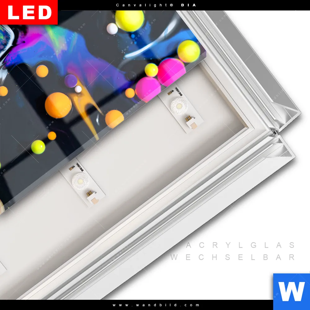 LED-Glasbild mit austauschbarem Acrylglas-Druck (Wechselbild)