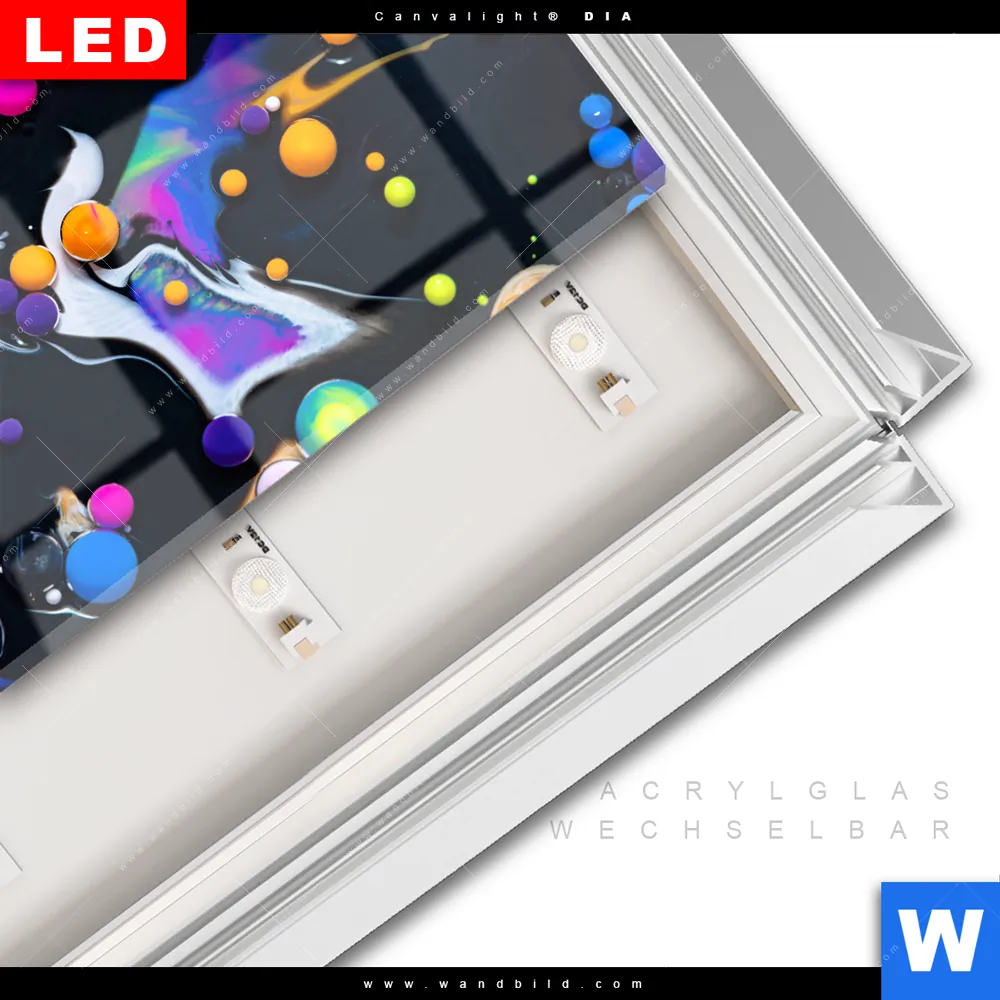 LED-Glasbild mit austauschbarem Acrylglas-Druck (Wechselbild)