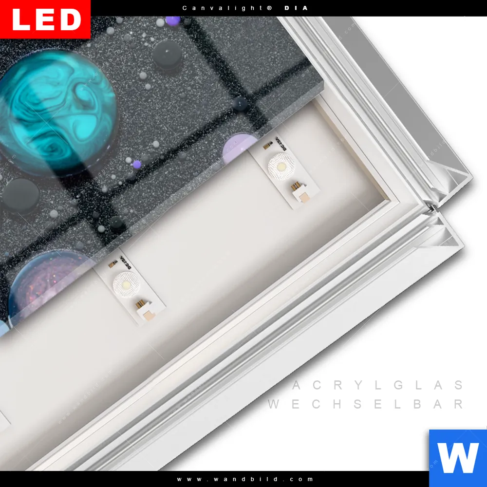 LED-Glasbild mit austauschbarem Acrylglas-Druck (Wechselbild)