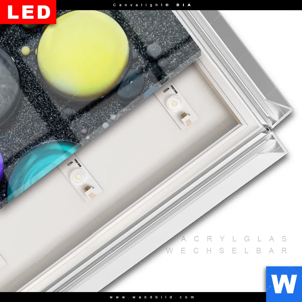 LED-Glasbild mit austauschbarem Acrylglas-Druck (Wechselbild)