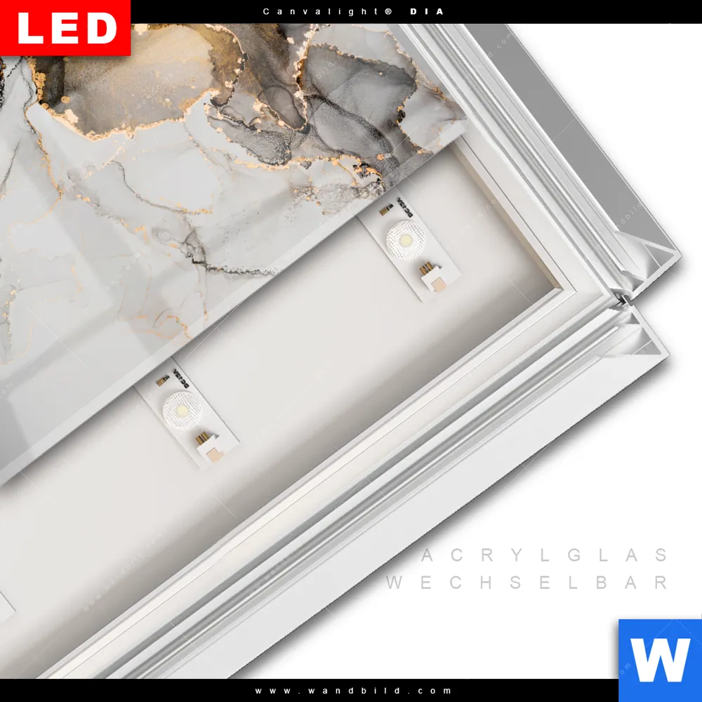 LED-Glasbild mit austauschbarem Acrylglas-Druck (Wechselbild)