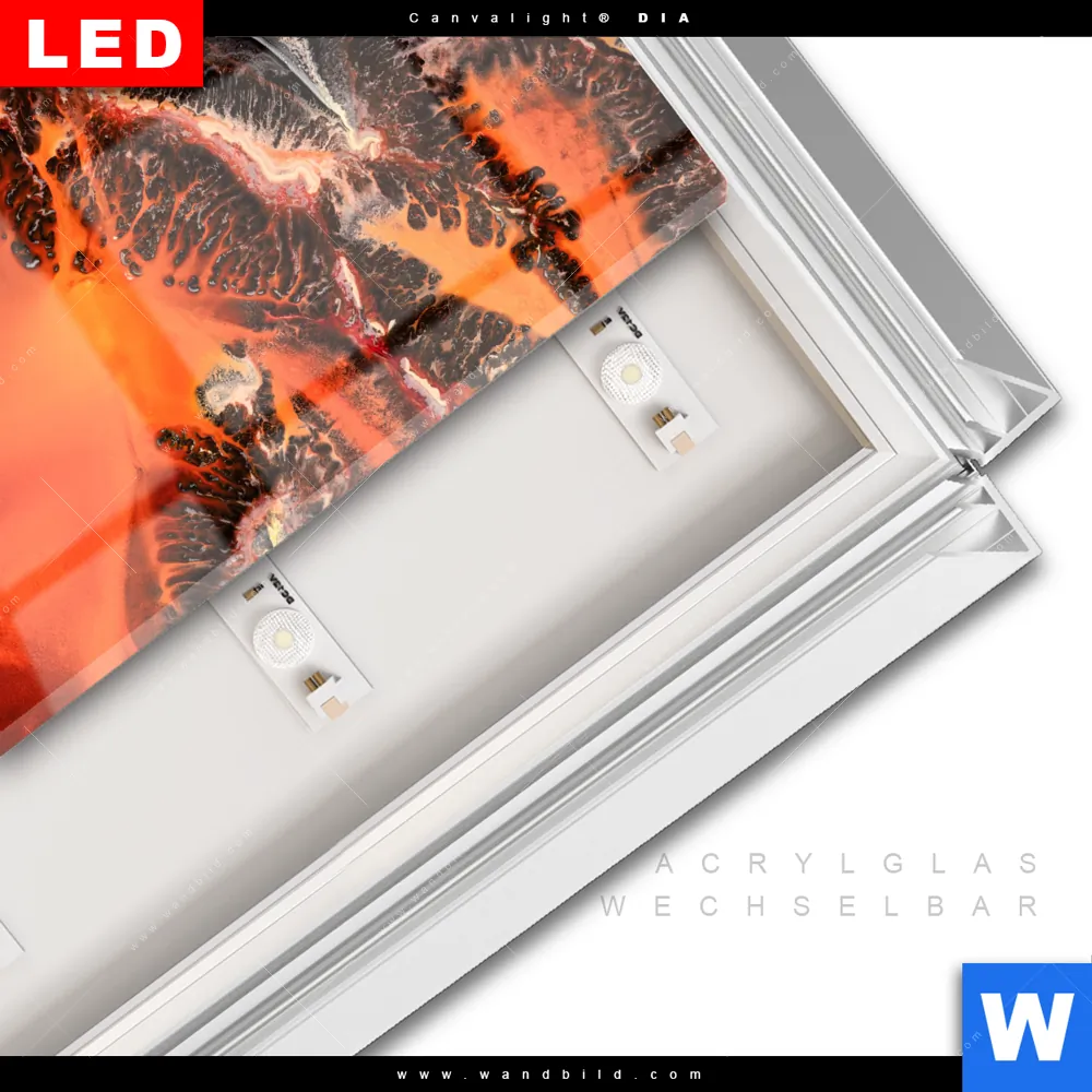 LED-Glasbild mit austauschbarem Acrylglas-Druck (Wechselbild)