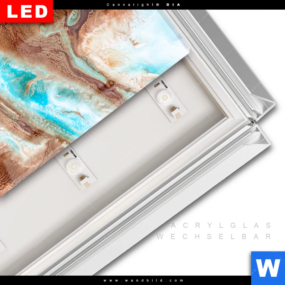 LED-Glasbild mit austauschbarem Acrylglas-Druck (Wechselbild)