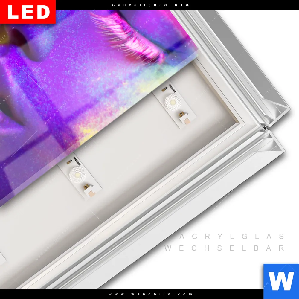 LED-Glasbild mit austauschbarem Acrylglas-Druck (Wechselbild)