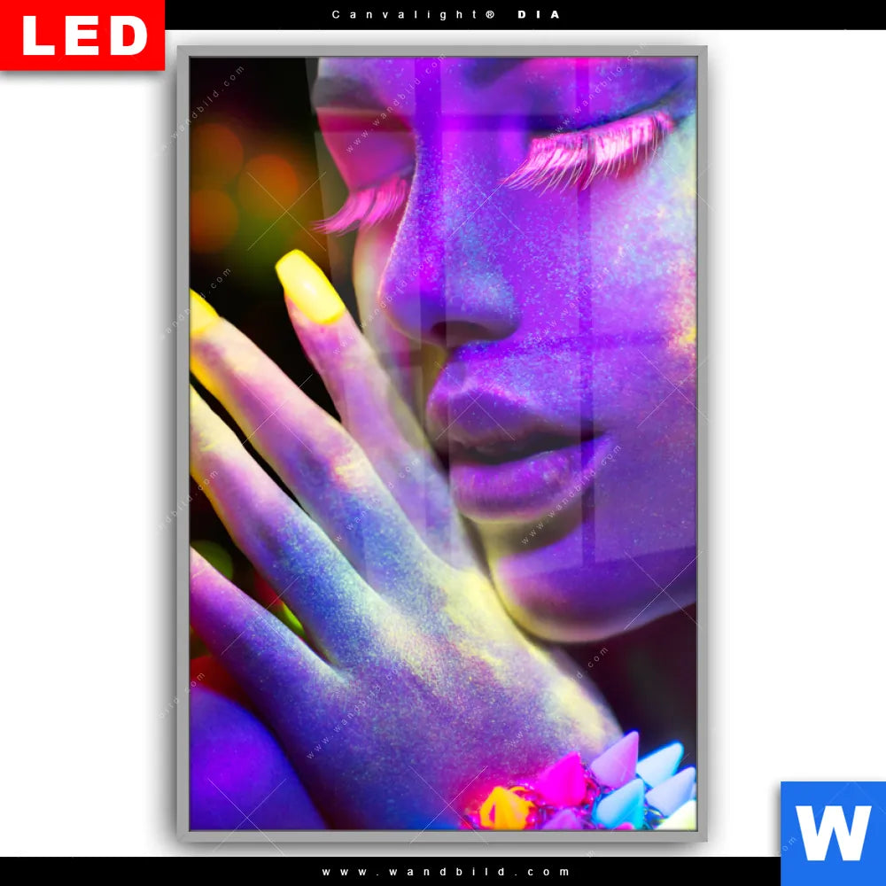 Canvalight® DIA Leuchtbild | Frau im Neonlicht | Hochformat