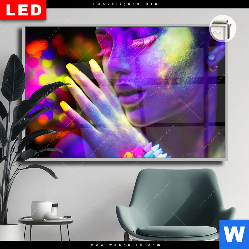 Canvalight® DIA Leuchtbild | Frau im Neonlicht | Querformat