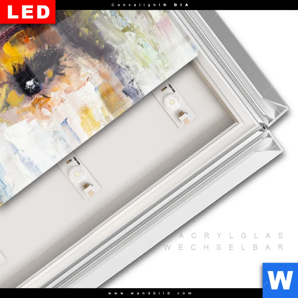 LED-Glasbild mit austauschbarem Acrylglas-Druck (Wechselbild)