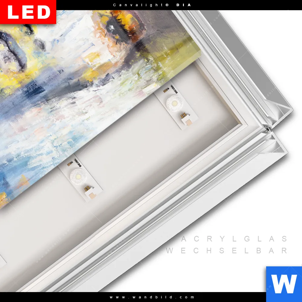 LED-Glasbild mit austauschbarem Acrylglas-Druck (Wechselbild)