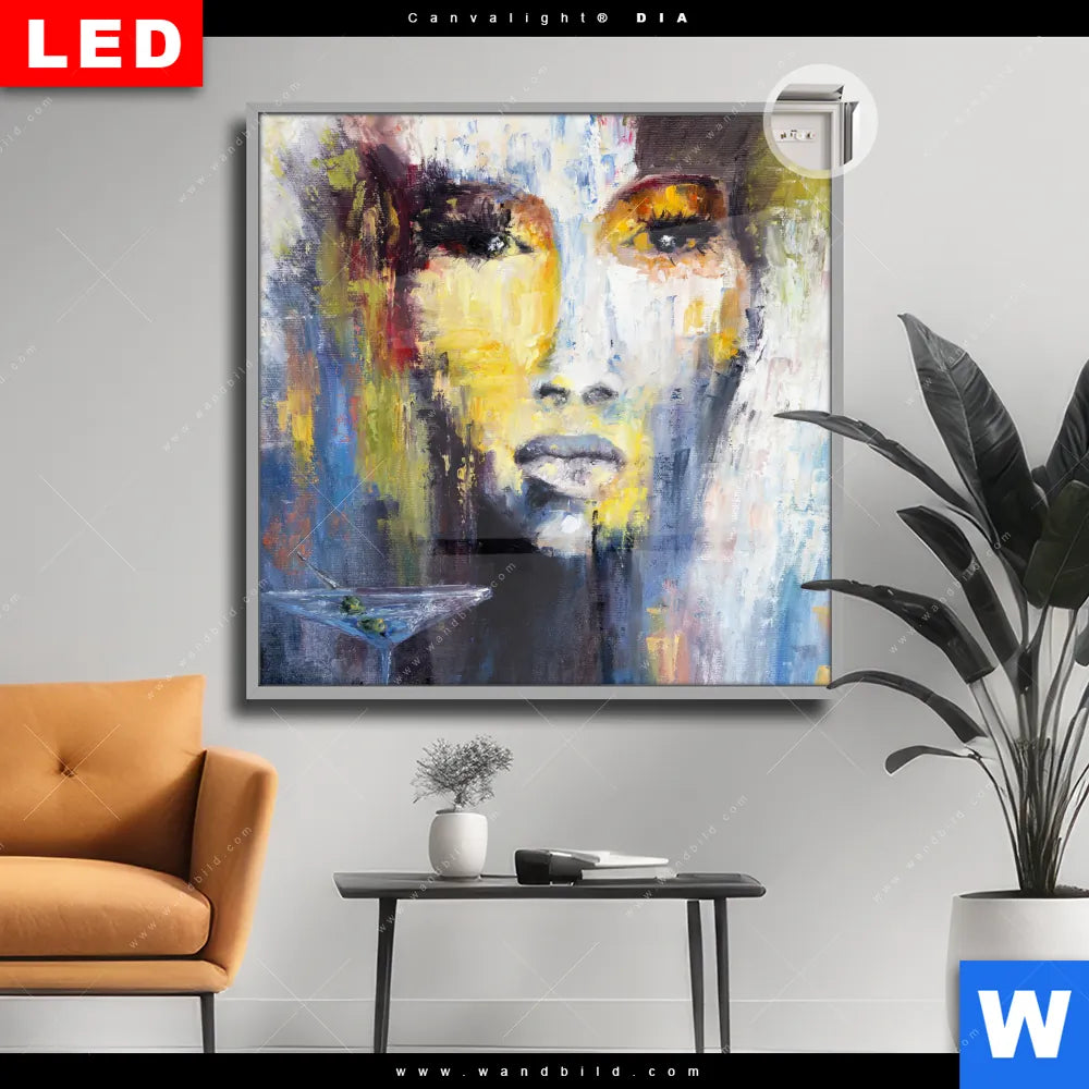 Canvalight® DIA Leuchtbild | Frau & Martini Cocktail | Quadrat