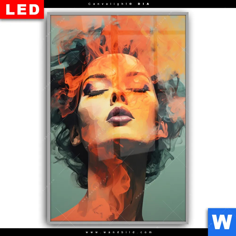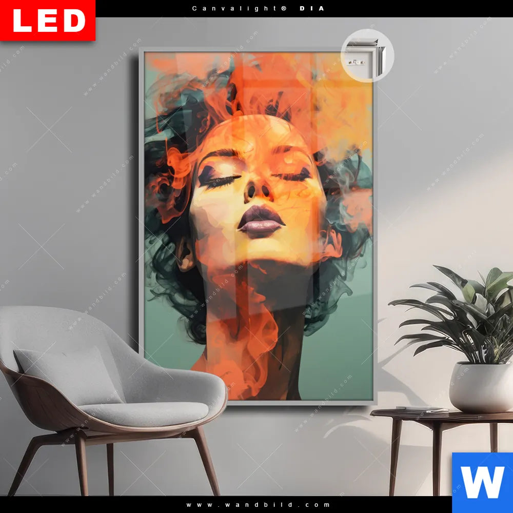 Canvalight® DIA Leuchtbild | Frau mit buntem Rauch | Hochformat