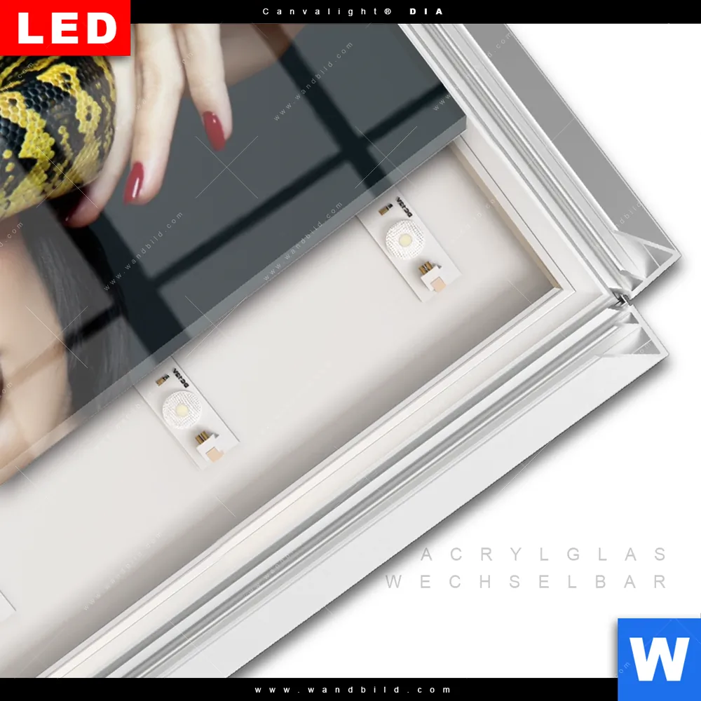 LED-Glasbild mit austauschbarem Acrylglas-Druck (Wechselbild)