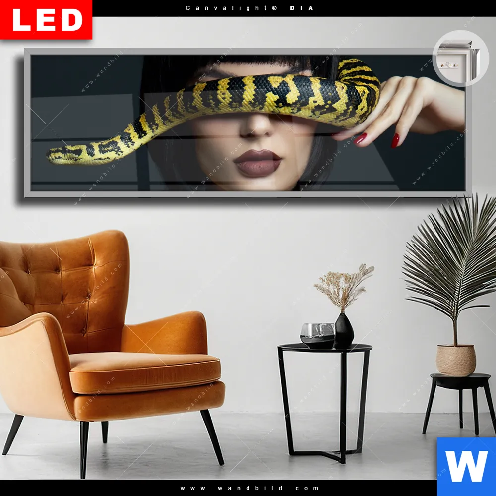 Canvalight® DIA Leuchtbild | Frau mit gelber Schlange | Panorama