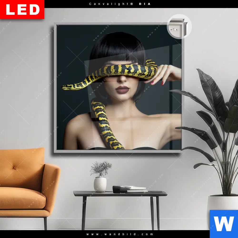 Canvalight® DIA Leuchtbild | Frau mit gelber Schlange | Quadrat