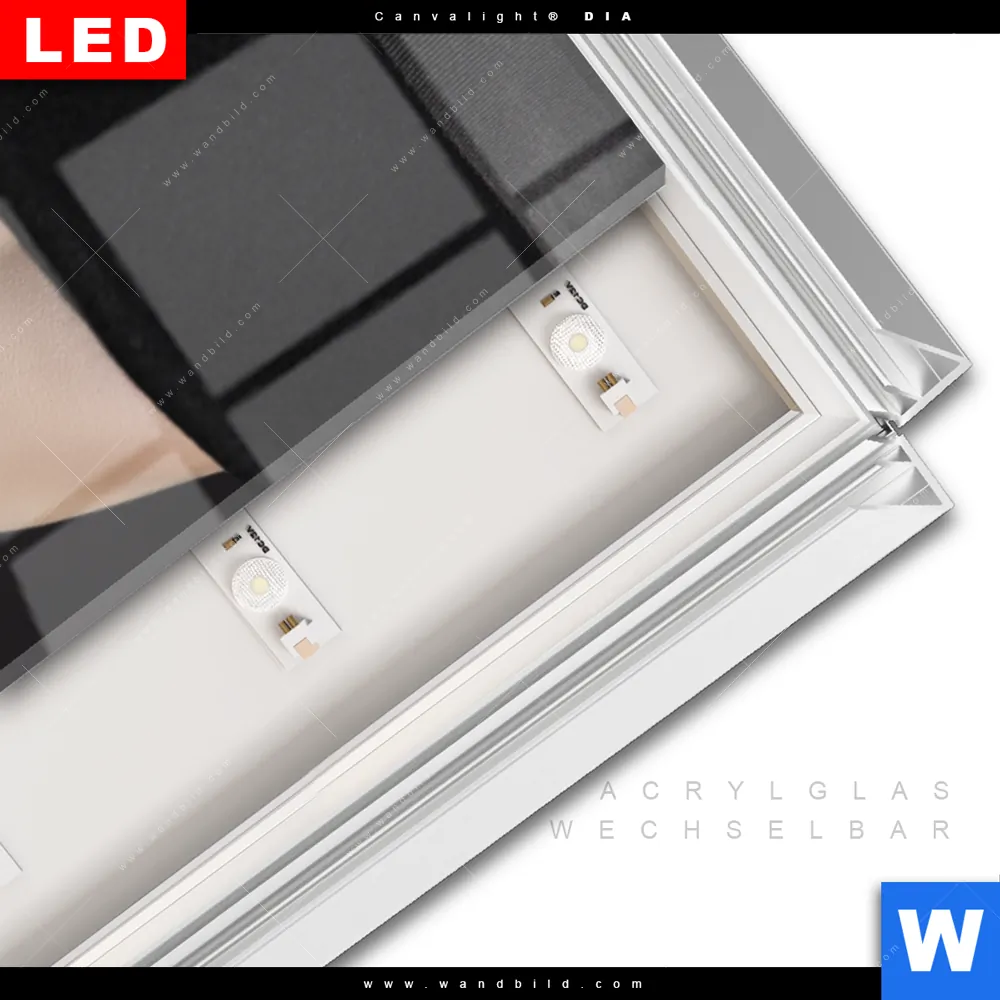LED-Glasbild mit austauschbarem Acrylglas-Druck (Wechselbild)
