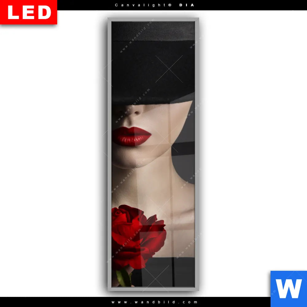 Canvalight® DIA Leuchtbild | Frau mit Hut & Rose | Schmal