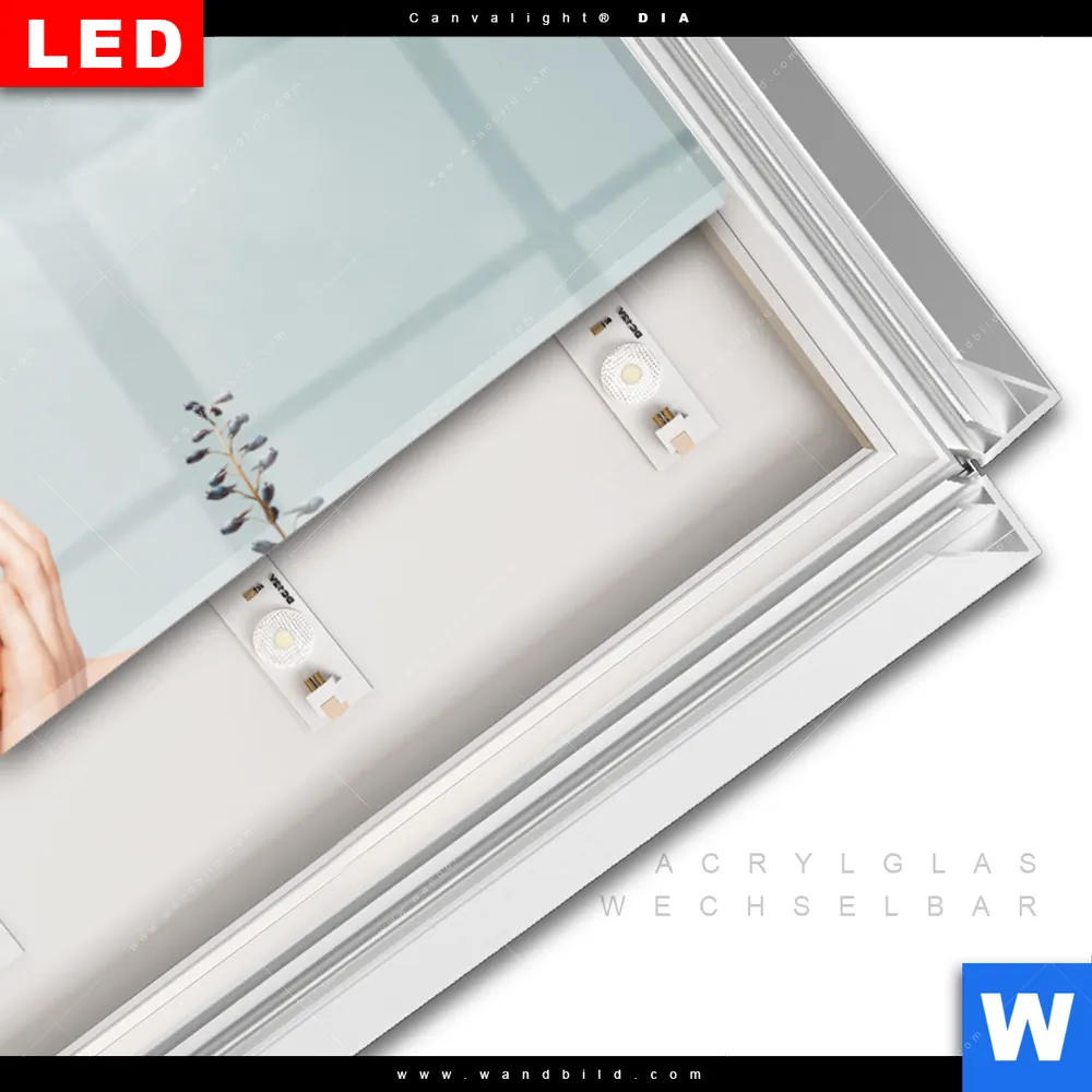 LED-Glasbild mit austauschbarem Acrylglas-Druck (Wechselbild)