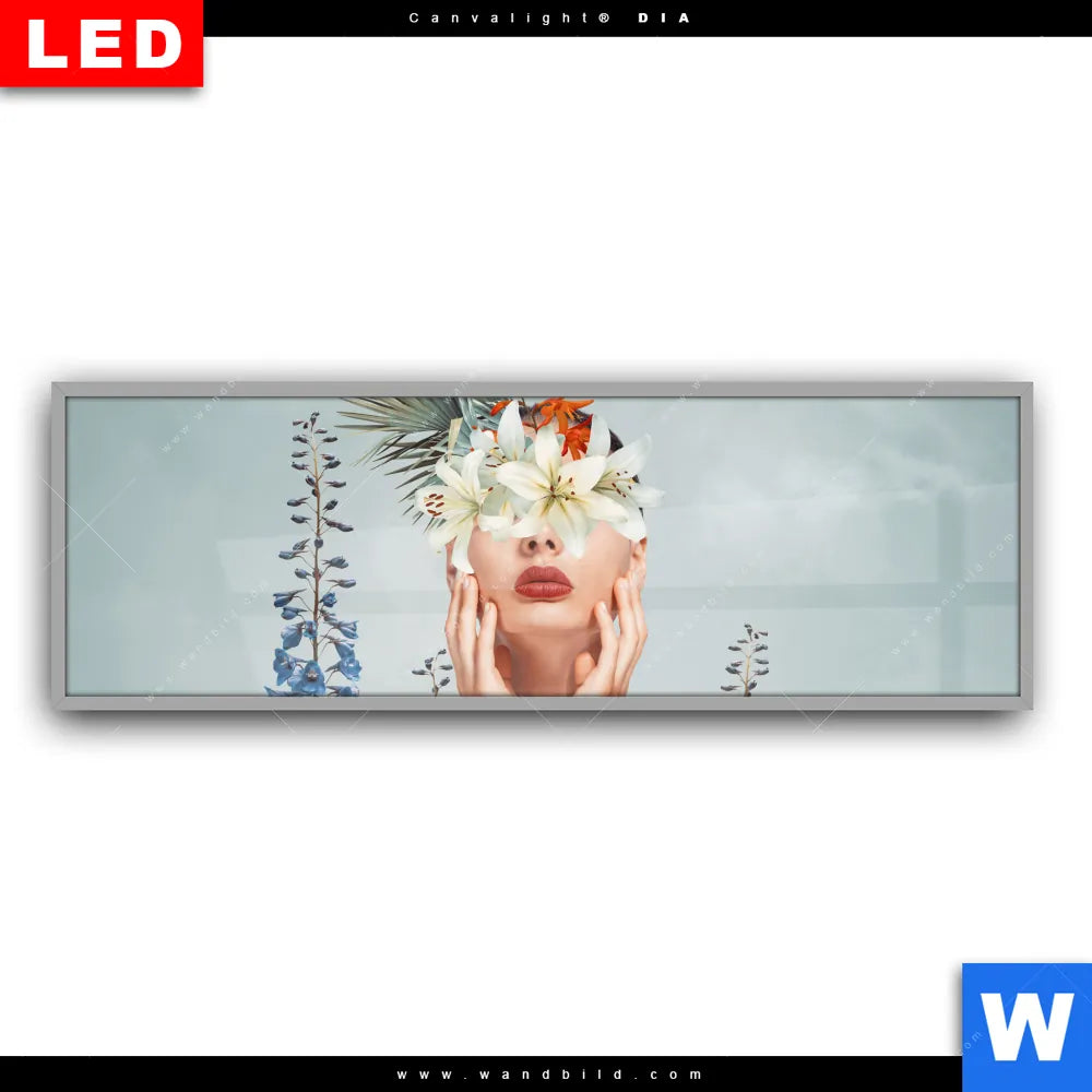 Canvalight® DIA Leuchtbild | Frauenportrait mit Blumen | Panorama