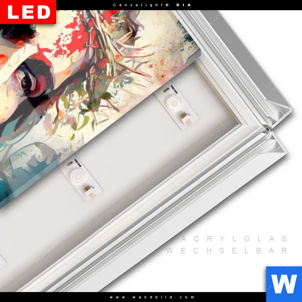 LED-Glasbild mit austauschbarem Acrylglas-Druck (Wechselbild)