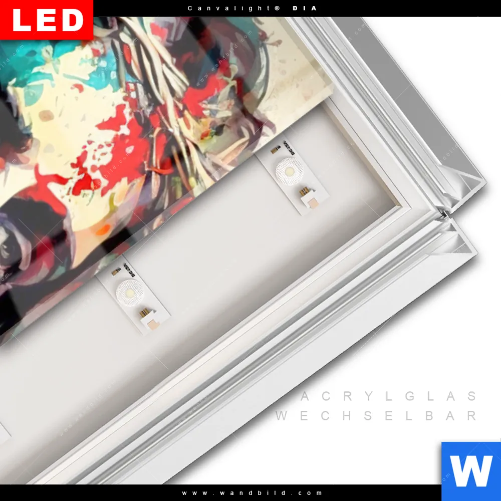 LED-Glasbild mit austauschbarem Acrylglas-Druck (Wechselbild)
