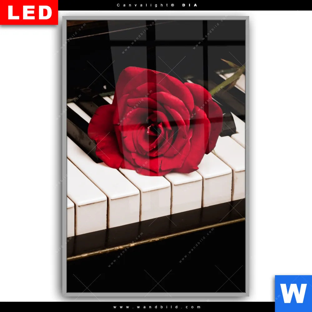 Canvalight® DIA Leuchtbild | Klavier & Rose | Hochformat