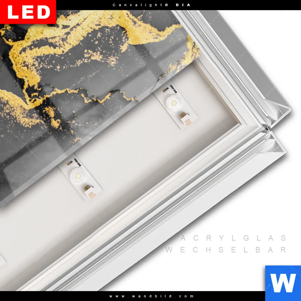 LED-Glasbild mit austauschbarem Acrylglas-Druck (Wechselbild)