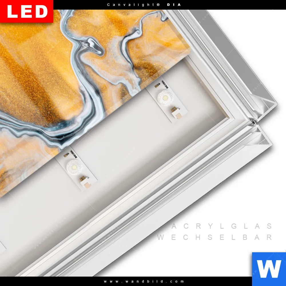 LED-Glasbild mit austauschbarem Acrylglas-Druck (Wechselbild)