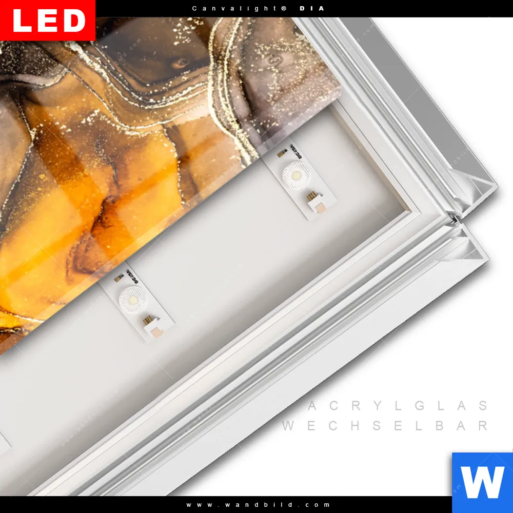 LED-Glasbild mit austauschbarem Acrylglas-Druck (Wechselbild)