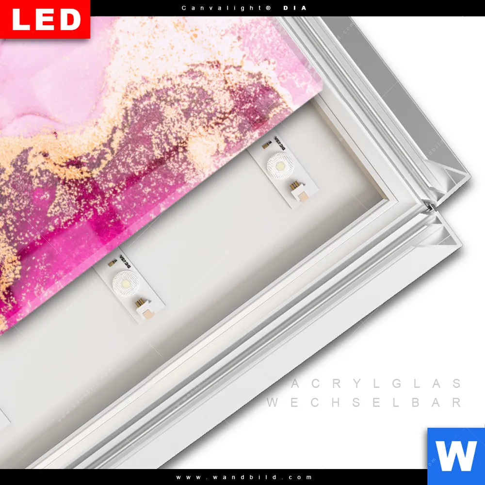 LED-Glasbild mit austauschbarem Acrylglas-Druck (Wechselbild)