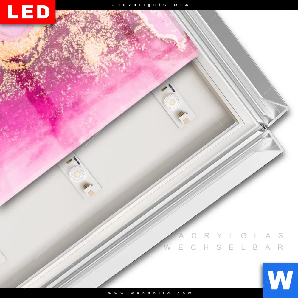 LED-Glasbild mit austauschbarem Acrylglas-Druck (Wechselbild)
