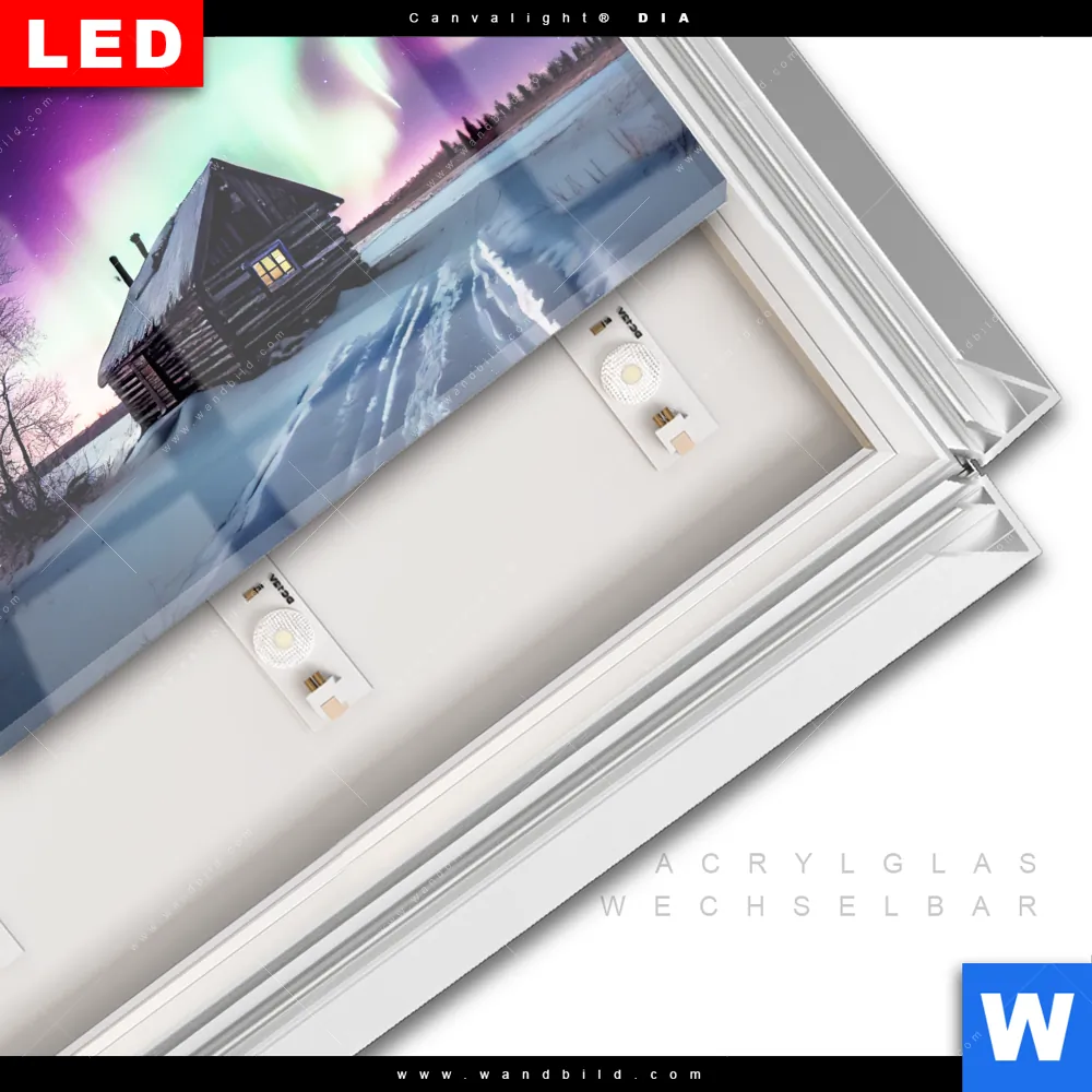 LED-Glasbild mit austauschbarem Acrylglas-Druck (Wechselbild)