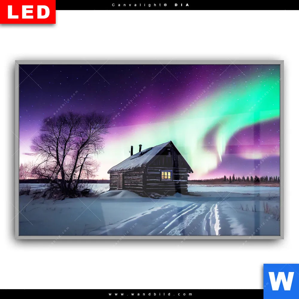 Canvalight® DIA Leuchtbild | Nordlichter über einem Holzhaus | Querformat