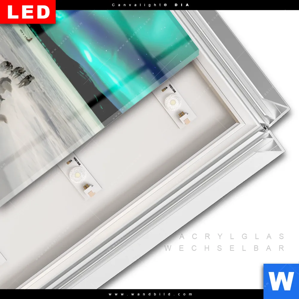 LED-Glasbild mit austauschbarem Acrylglas-Druck (Wechselbild)